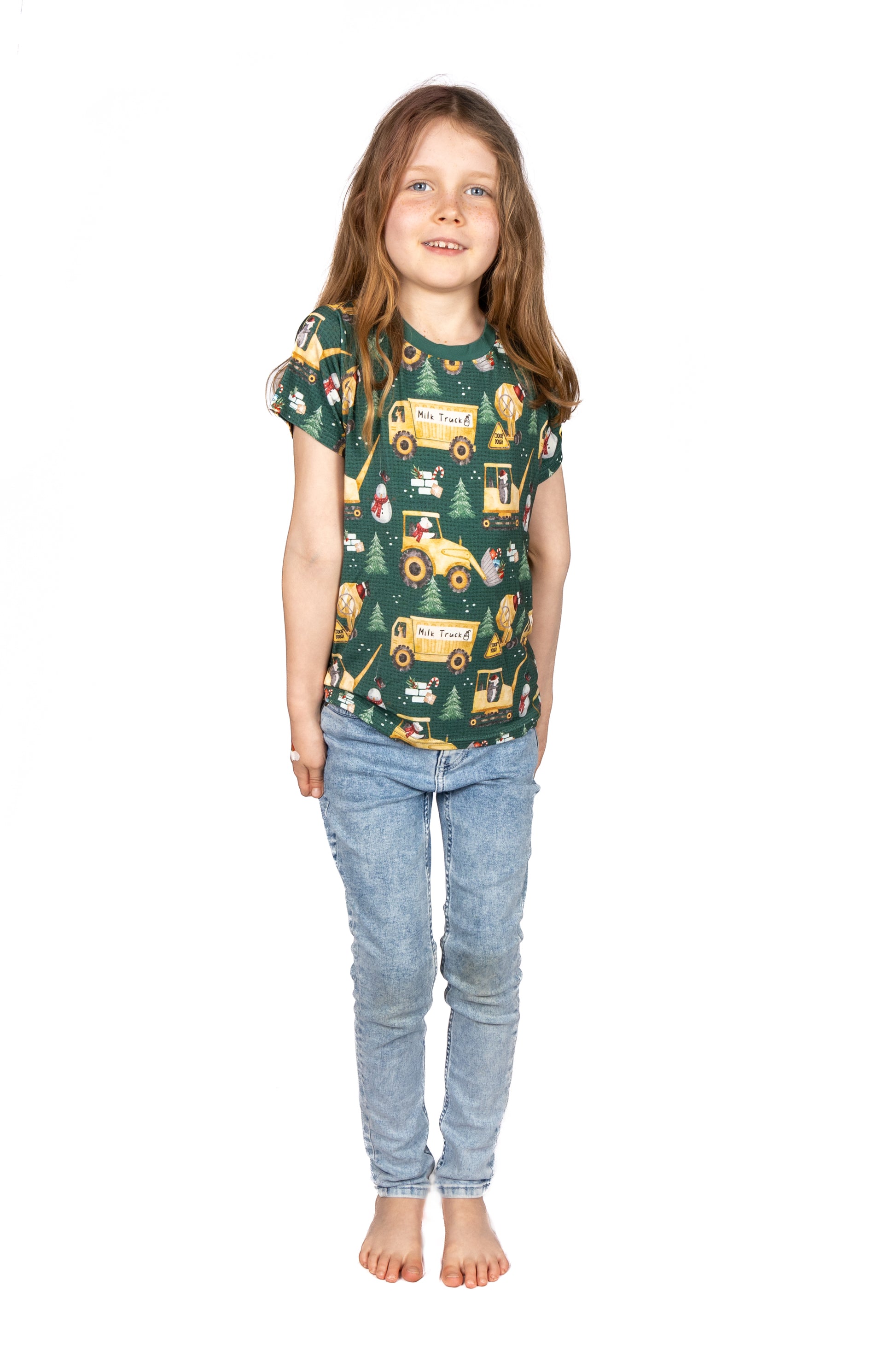 Build holiday cheer with our Christmas Construction-Themed Kids T-Shirt! Featuring festive bulldozers and excavators decked out with Christmas lights and Santa hats, this soft and comfy tee is perfect for little builders ready to celebrate in style! 🎄🚧🎅