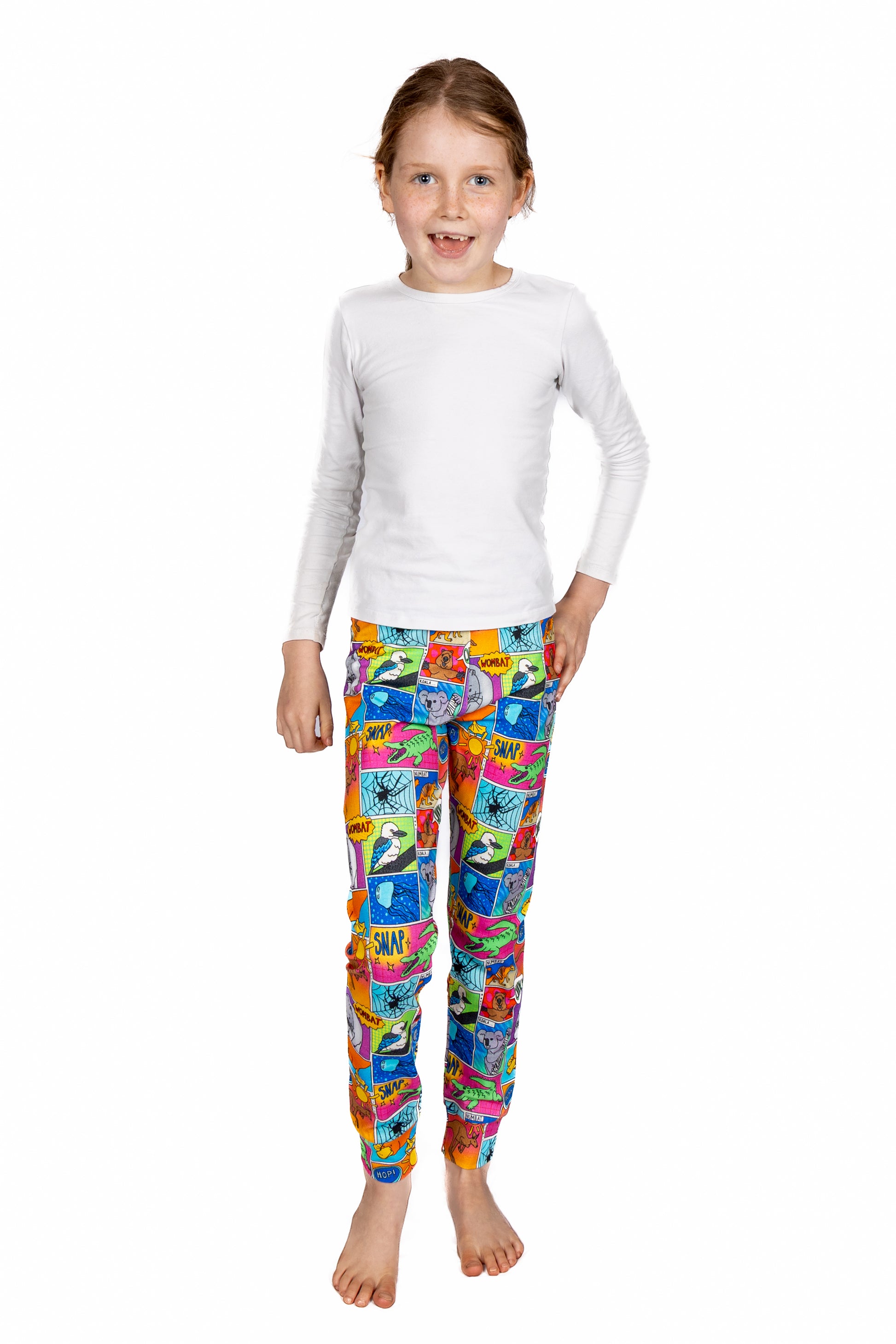“Pow! Zoom! Meet the wildest crew Down Under! These comic-style leggings bring Aussie animals to life with bold colours, playful energy, and all-day comfort for your little superhero.”